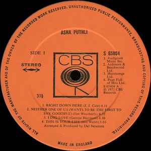 Asha Puthli's self-titled 1973 UK vinyl LP captures her unique fusion of jazz, soul, and Indian influences with remarkable clarity. This used near-mint condition album offers pristine sound quality and showcases her distinctive vocal style and sophisticated arrangements. A rare find for collectors and aficionados of eclectic 1970s music, this record exemplifies Puthli’s innovative artistry and remains a standout piece in any serious vinyl collection.