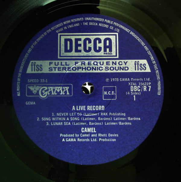 Camel's A Live Record is a 2-vinyl LP of live performances from their UK 1978 tour. The gatefold design and stereo sound offer an immersive listening experience. Featuring high-quality vinyl and in excellent condition (USED VG+), this album is perfect for die-hard fans and audiophiles alike.