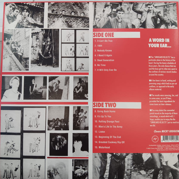 Cockney Rejects - Unheard Rejects - Vinyl LP, Reissue, Clear Vinyl, UK 2022 (NEW SEALED)