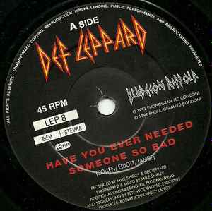 Def Leppard - Have You Ever Needed Someone So Bad - Vinyl 7", 45 RPM, Single, UK 1992 (USED VG)
