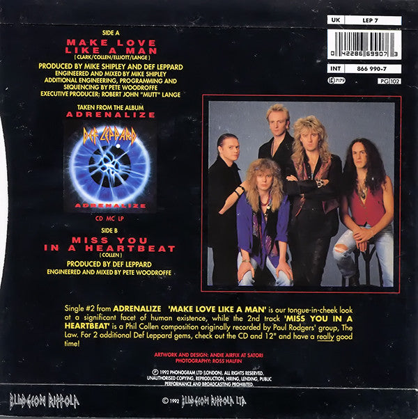 Def Leppard - Make Love Like A Man - Vinyl 7", 45 RPM, Single, UK 1992 (USED VG+)