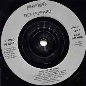 Experience the rocking sounds of Def Leppard with their single "Make Love Like A Man". This 7" vinyl, released in the UK in 1992, is a must-have for collectors. With its 45 RPM speed, this used record is in very good condition, ready to bring the energy and nostalgia of Def Leppard straight to your turntable.