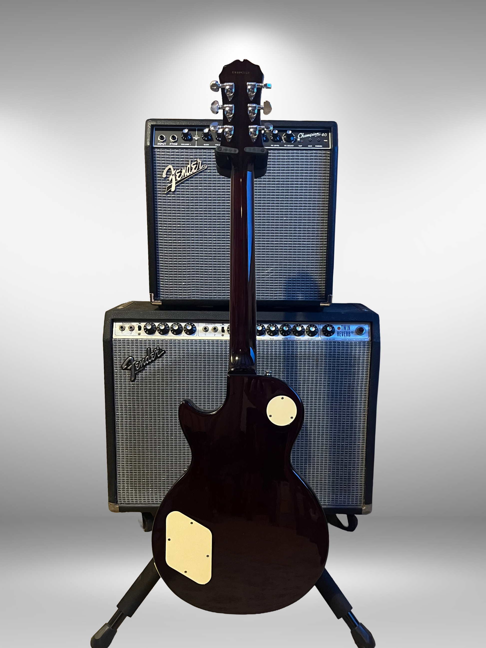 The Epiphone Les Paul '56 Gold Top from 2004 is a meticulously crafted recreation of the classic 1956 model, featuring authentic P-90 pickups that deliver a raw, vintage tonal character prized by professionals. Its solid mahogany body with a maple top ensures a balanced mix of warmth and brightness, while the slim taper neck enhances playability and speed. This used instrument combines historic design with modern reliability, making it an exceptional choice for players seeking vintage tone and feel without compromise. Ideal for experts who value nuance and authenticity in their sound.