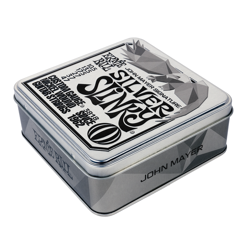 Ernie Ball John Mayer Silver Slinky Guitar Strings 10.5-47, 3-Pack Tin