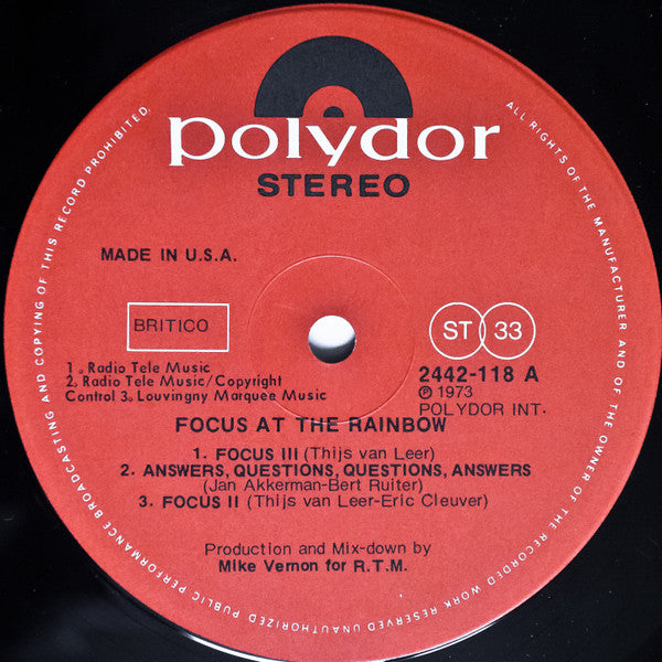 Focus - At The Rainbow - Vinyl LP, Album, Stereo, UK 1973 (USED VG+)