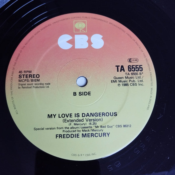Freddie Mercury's iconic solo single in its extended form, pressed on 12" vinyl at 45 RPM for superior sound quality. This 1985 UK release features stereo sound and comes in an original gatefold sleeve. Graded VG+ condition, showing minimal wear consistent with careful play and storage. A standout piece for collectors of Mercury's solo work and classic 80s dance-pop vinyl. Includes original artwork and packaging.