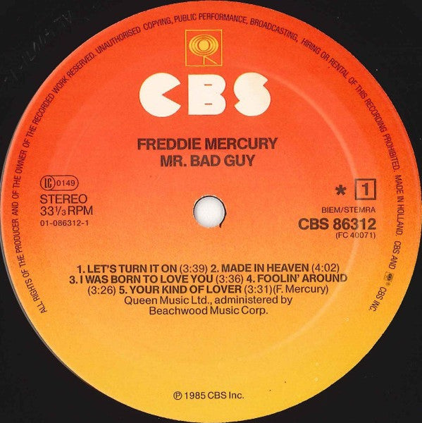 Freddie Mercury - Mr. Bad Guy - Vinyl LP, Album, Stereo, 1985 (VG+)