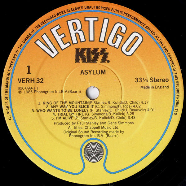 Expertly crafted and long sought after, Kiss's 1985 album 'Asylum' is finally here. This used vinyl LP from the UK is in excellent condition (VG+) and offers a unique blend of rock and metal, guaranteed to please even the most discerning fans. Don't miss your chance to own this rare gem.