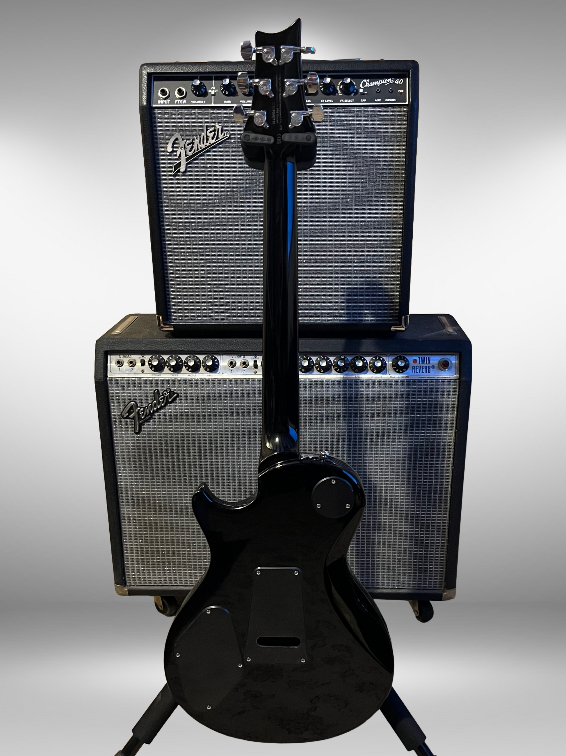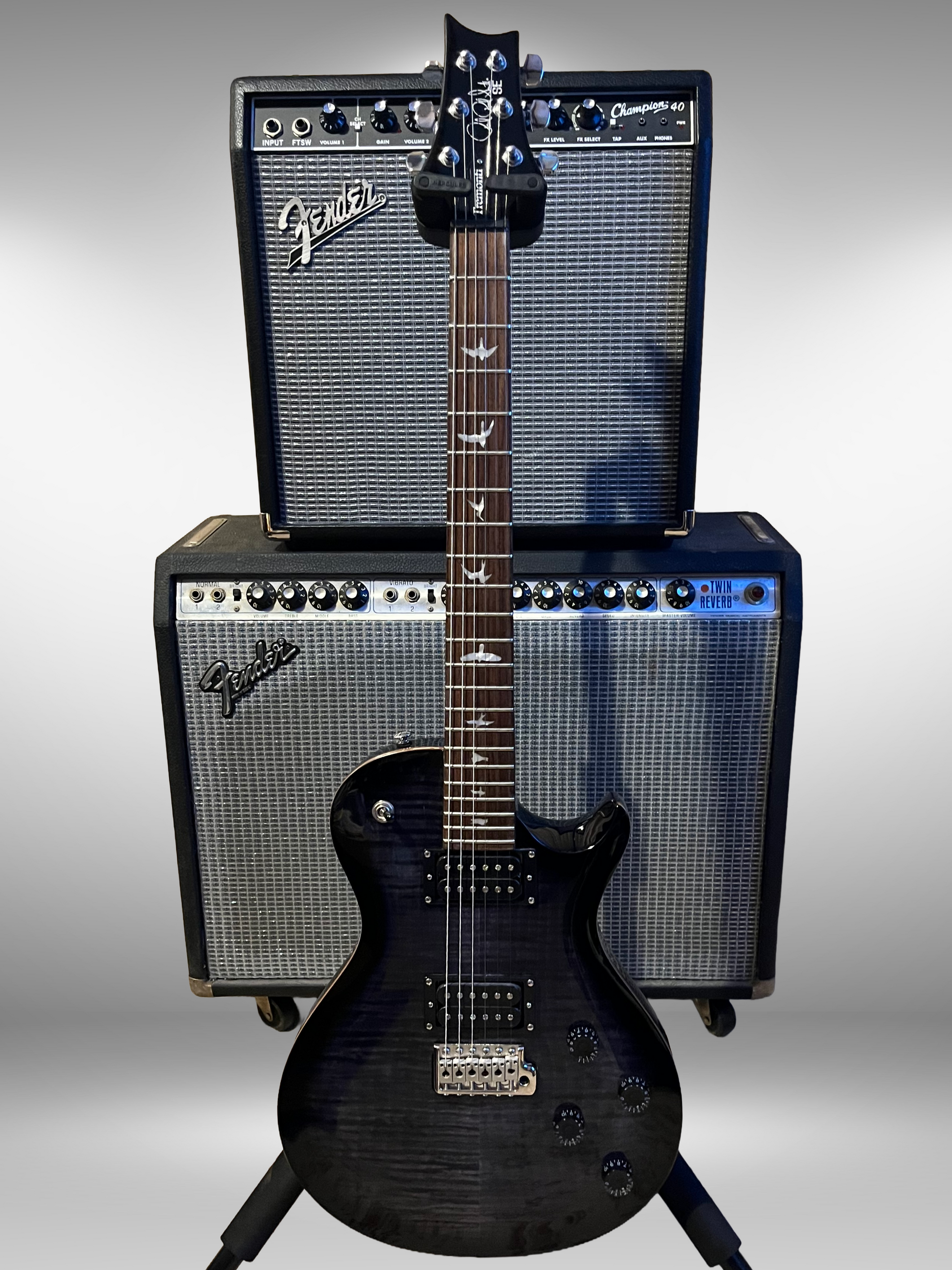 The PRS SE Mark Tremonti Signature in Charcoal Burst (2023) offers professional-level craftsmanship and tonal versatility favored by Mark Tremonti himself. This used model features a solid mahogany body with a carved maple top and a set mahogany neck, delivering rich sustain and dynamic response. Equipped with PRS-designed Tremonti pickups, it delivers powerful, articulate high-gain tones perfect for rock and metal. Its sleek design, combined with reliable hardware and comfortable playability, makes it an excellent choice for serious guitarists seeking a versatile and distinctive instrument.