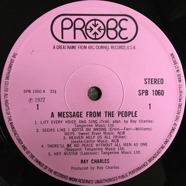 Ray Charles - A Message From The People - Vinyl LP, Album, UK 1972 (USED VG+)