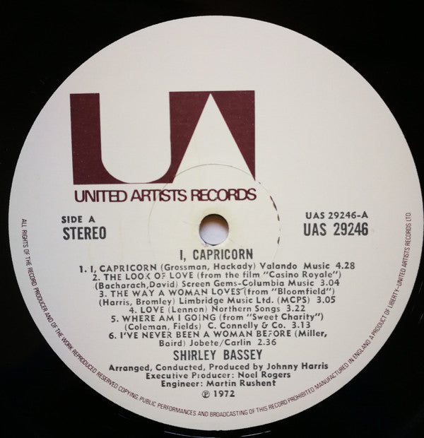 Shirley Bassey's 1972 UK vinyl LP, "I, Capricorn," is a pristine near-mint used album showcasing her powerful vocals and dynamic range. This classic record captures Bassey’s distinctive blend of pop and soul, featuring lush arrangements and compelling storytelling. A must-have for collectors and enthusiasts of sophisticated vocal performances, this edition preserves the authentic sound quality and vintage appeal of early 70s UK pressings.
