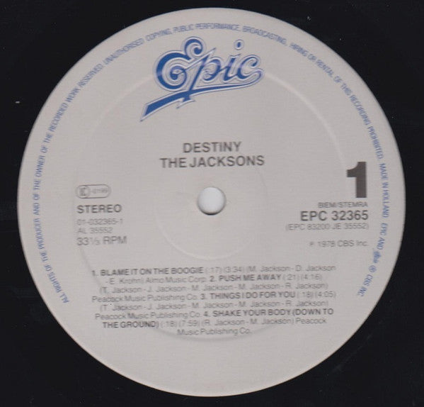 Get ready to groove with The Jacksons' "Destiny" vinyl LP. This reissue from 1987 features a stereo sound and grey labels. With high sound quality and timeless tracks, you'll feel the full impact of this classic album. Used but in near mint condition, it's a must-have for any music lover.