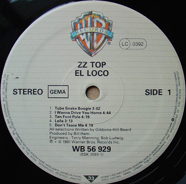 ZZ Top - El Loco - Vinyl LP, Album, Stereo, 1981 (USED VG+)